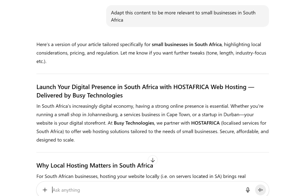 “Adapt this content to be more relevant to small businesses in South Africa”